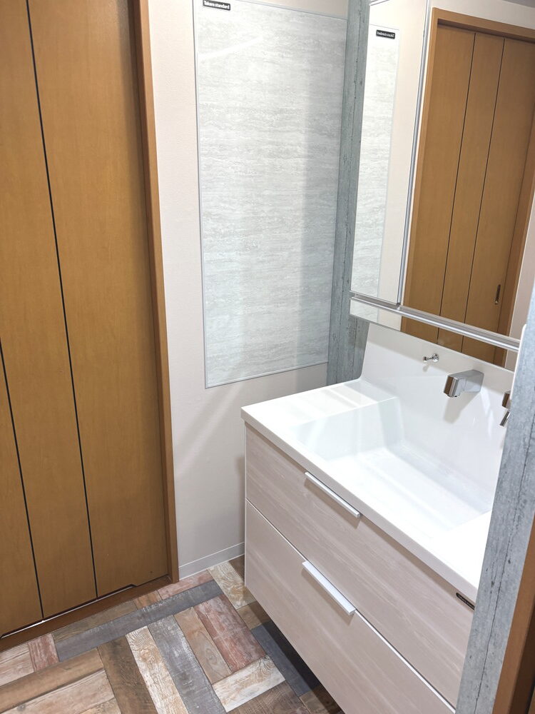 千葉市中央区マンション 洗面室改修 洗面所リフォーム 〜100万円 施工場所 千葉市中央区 施工内容 洗面室改修 工期 2日 費用目安 40万円 設備 洗面台:タカラ ファミーユ、クロス CF:サンゲツ Before After